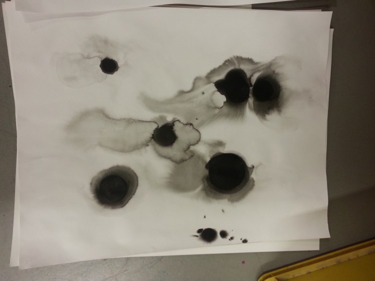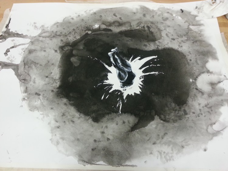 L’encre de Chine m’apparaît comme une évidence pour représenter les abysses. D’un trou à un autre, le sujet s’efface pour faire ressurgir des questionnements intérieurs sombres et inquiétants.